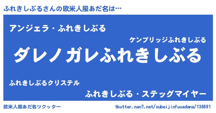 | 男性向けラノベタイトル風あだ名 | 『魔弾の王とふれきしぶる』 |