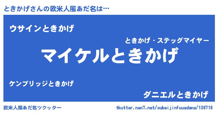 ヘコむあだ名 | 『ときにゅー』『とき太郎』 |