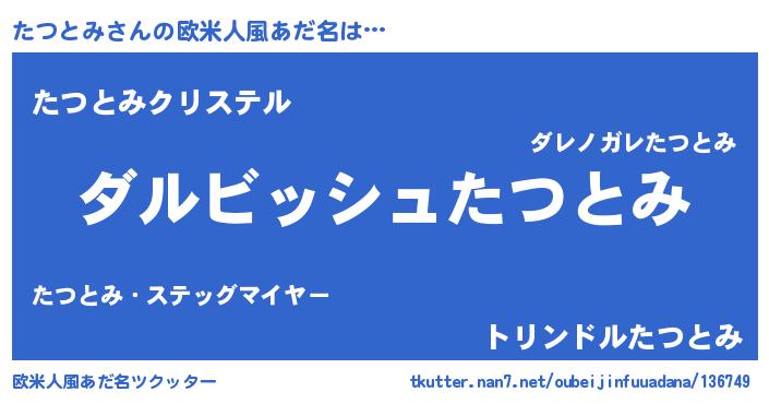 | ヒーロー風カッコイイあだ名 | 『ネオタツトミ』『ウルトラたつとみマン』 |