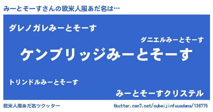 | 意味不明あだ名 | 『自称みーとそーす』 |