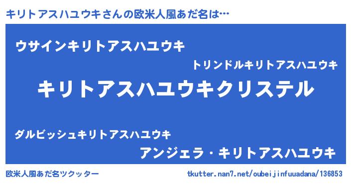 | ポケモン風あだ名 | 『キリトダネ』『ヒキリトアスハユウキ』 |