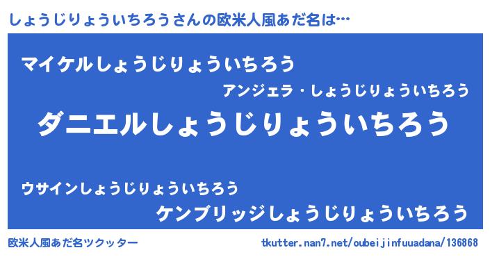 | 男性向けラノベタイトル風あだ名 | 『おまえをオタクにしてやるから、俺をしょうじりょういちろうにしてくれ! 』 |