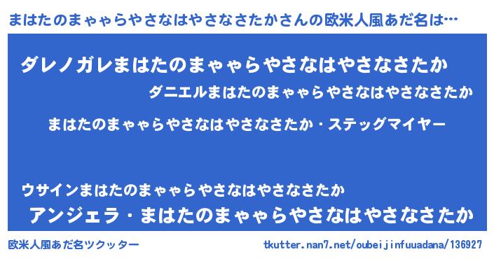 | 意味不明あだ名 | 『住所不定無職まはたのまゃゃらやさなはやさなさたか(8歳)』 |