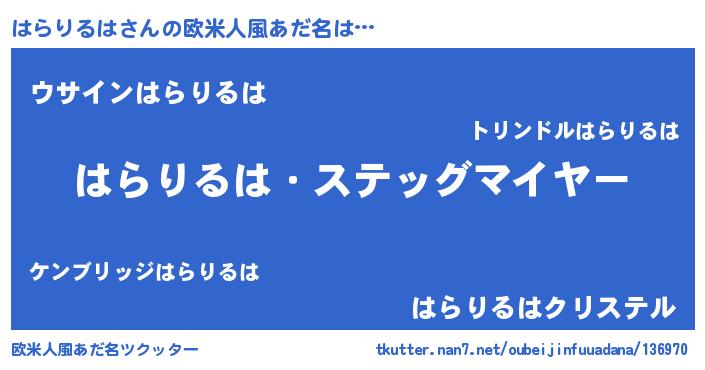 | 男性向けラノベタイトル風あだ名 | 『緋弾のハラリルハ』 |