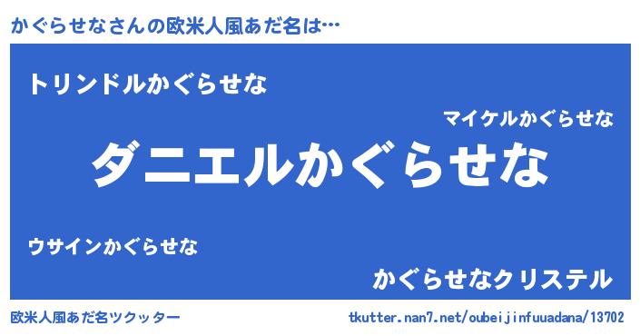 | ヒーロー風カッコイイあだ名 | 『天空の使者かぐらせな』『炎刃騎士カグ』 |