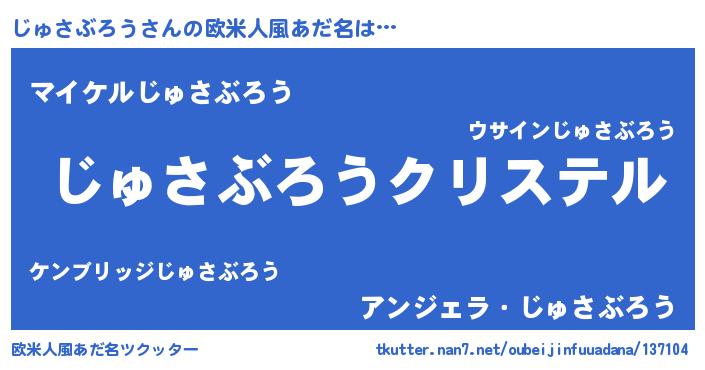 | 男性向けラノベタイトル風あだ名 | 『やはりじゅさぶろうの青春ラブコメはまちがっている 』 |