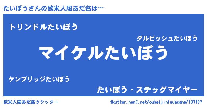 | 男性向けラノベタイトル風あだ名 | 『たいぼうの憂鬱』『緋弾のタイボウ』 |
