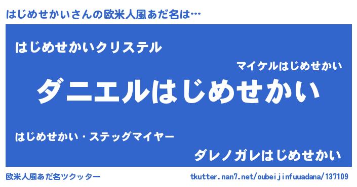 | 男性向けラノベタイトル風あだ名 | 『ノーゲーム・ノーハジメセカイ』 |