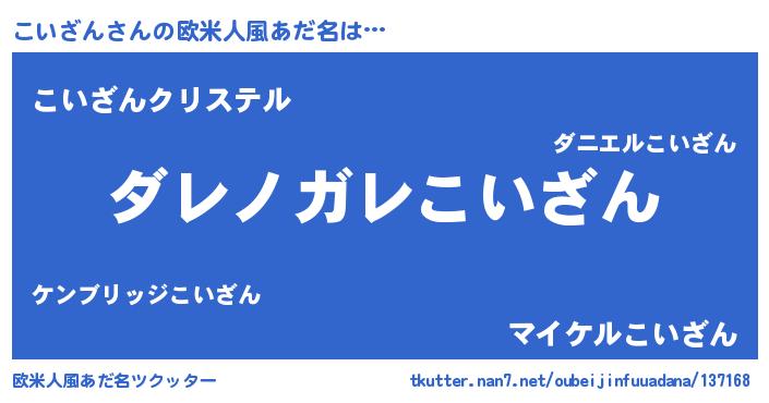 | 男性向けラノベタイトル風あだ名 | 『この素晴らしい世界にこいざんを!』 |