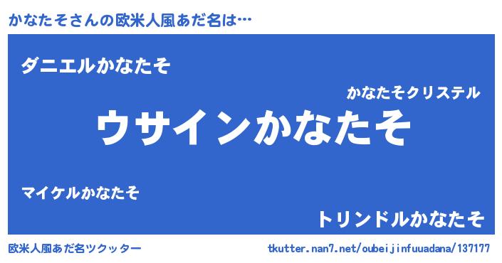 | 男性向けラノベタイトル風あだ名 | 『かなたその嫁は女の子じゃないと思った?』 |