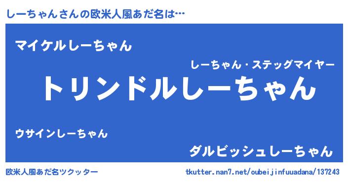| 胡散臭い通販商品みたいなあだ名 | 『必ず成功するブレスレット…その名も「しーちゃん」』 |