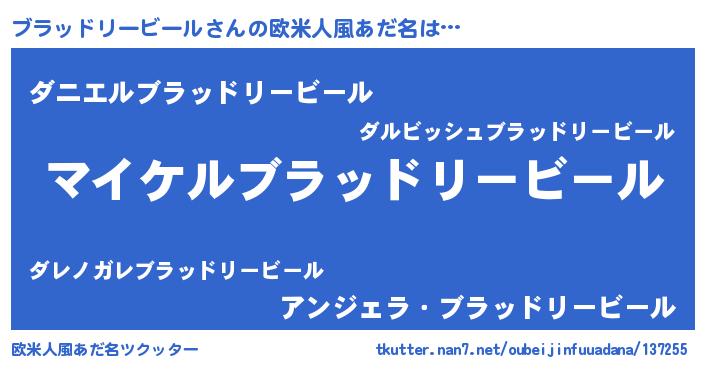 | ヘコむあだ名 | 『ブラにー』『ブラッドリービール(笑)』 |