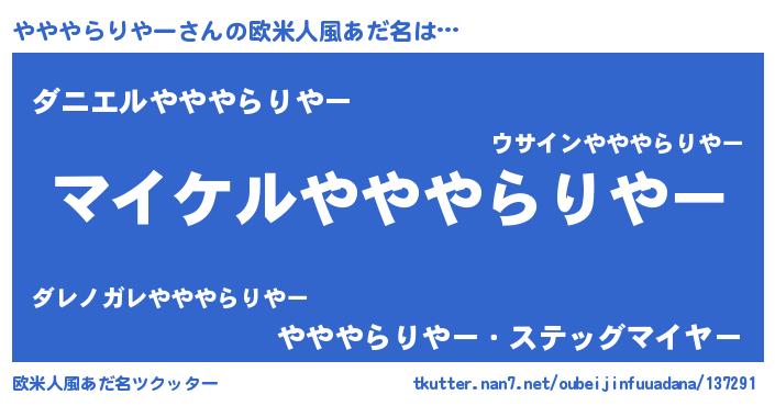 | 男性向けラノベタイトル風あだ名 | 『ヤヤヤラリヤーアートオンライン』 |