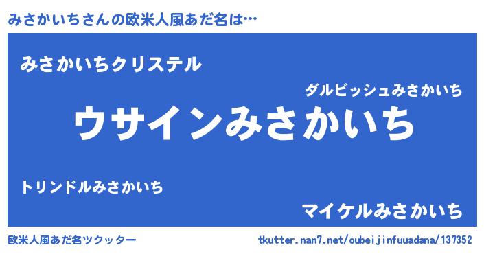 | 男性向けラノベタイトル風あだ名 | 『みさかいちの嫁は女の子じゃないと思った?』 |