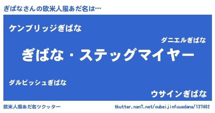 | 男性向けラノベタイトル風あだ名 | 『緋弾のギバナ』 |