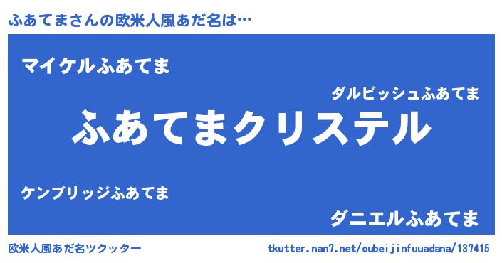 | 意味不明あだ名 | 『ふあてまフォーエバー』『自称ふあてま』 |