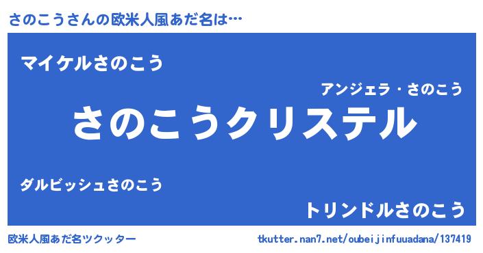 | 男性向けラノベタイトル風あだ名 | 『うちの娘の為ならば、俺はもしかしたらさのこうも倒せるかもしれない。』 |