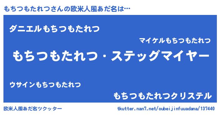| 男性向けラノベタイトル風あだ名 | 『うちのもちつもたれつが世界を掌握している!』 |