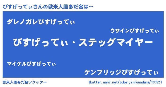 | 男性向けラノベタイトル風あだ名 | 『冴えないぴすげってぃの育てかた』 |
