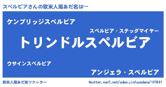 | 男性向けラノベタイトル風あだ名 | 『スペルビア~年齢イコール彼女いない歴の魔法使い~』 |