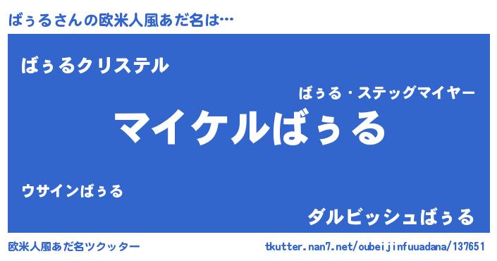 | 男性向けラノベタイトル風あだ名 | 『バゥルアートオンライン』 |