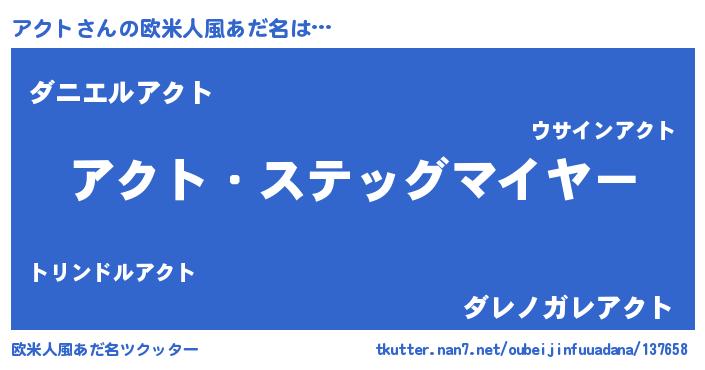 | 男性向けラノベタイトル風あだ名 | 『うちのアクトが世界を掌握している!』 |