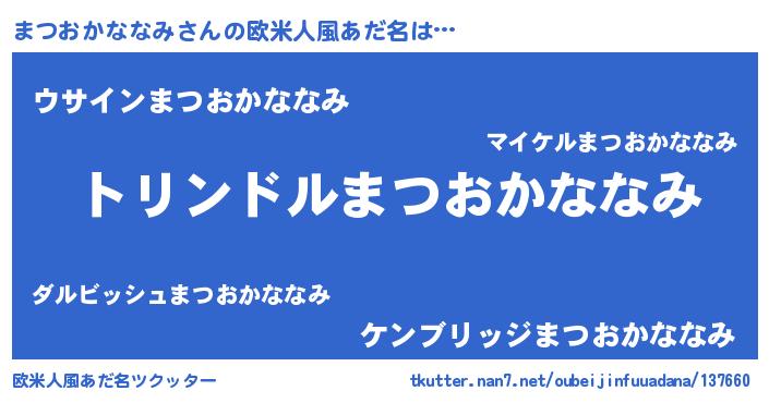 | 女子向けラノベタイトル風あだ名 | 『まつおかななみの玉の輿計画!』 |