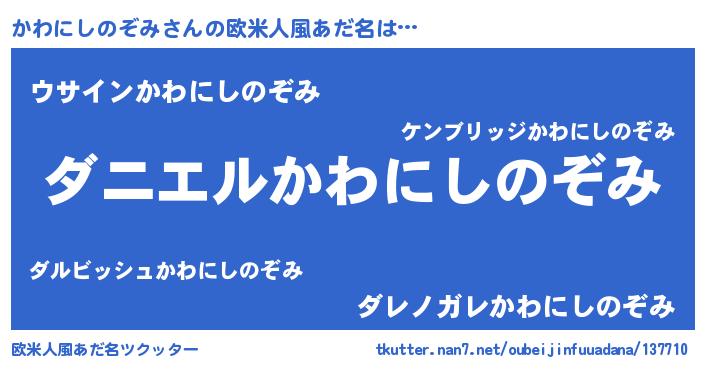 | ヘコむあだ名 | 『かわっぺ』『かわにしのぞみ(笑)』 |
