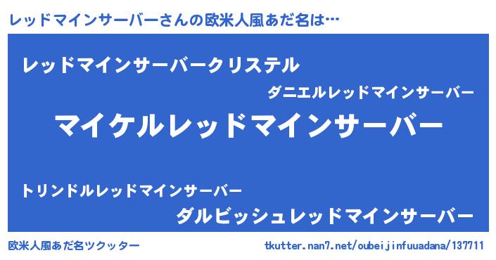 | 男性向けラノベタイトル風あだ名 | 『レッドマインサーバーの憂鬱』 |