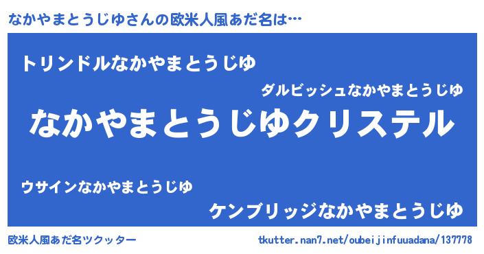 | 男性向けラノベタイトル風あだ名 | 『やはりなかやまとうじゆの青春ラブコメはまちがっている 』 |