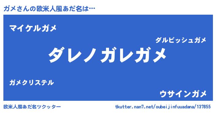 | ポケモン風あだ名 | 『ガーメイ』『ガメチュウ』『ヒガメ』 |