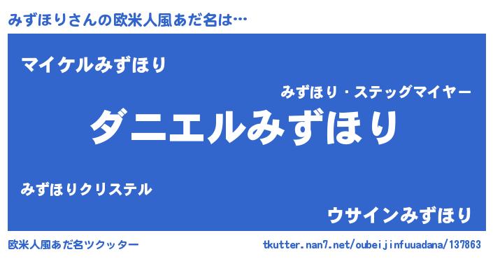 | ヒーロー風カッコイイあだ名 | 『慈愛の使者みずほり』『炎刃騎士ミズ』 |
