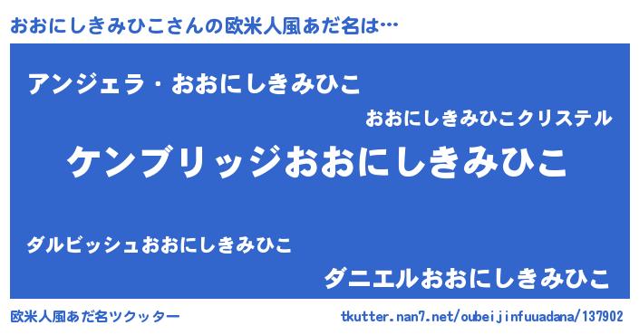 | 男性向けラノベタイトル風あだ名 | 『Re:おおにしきみひこから始める異世界生活』 |