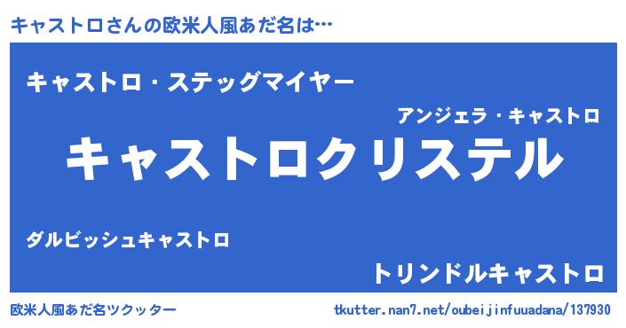 | 男性向けラノベタイトル風あだ名 | 『やはりキャストロの青春ラブコメはまちがっている 』 |