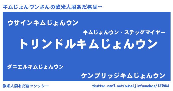 | 男性向けラノベタイトル風あだ名 | 『転生したらキムじょんウンだった件』 |