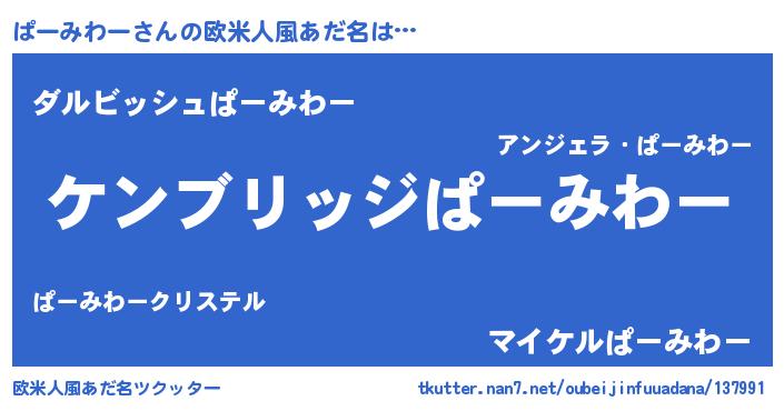 | 男性向けラノベタイトル風あだ名 | 『魔法科高校のぱーみわー』 |