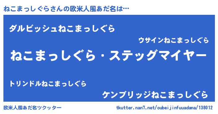 | ヘコむあだ名 | 『ねこまっしぐら(笑)』『ねこを』 |