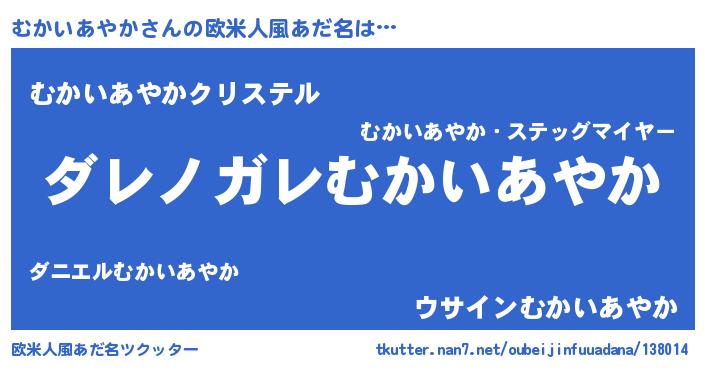 | 意味不明あだ名 | 『住所不定無職むかいあやか(74歳)』 |