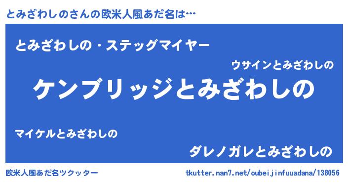 | 男性向けラノベタイトル風あだ名 | 『Re:とみざわしのから始める異世界生活』 |