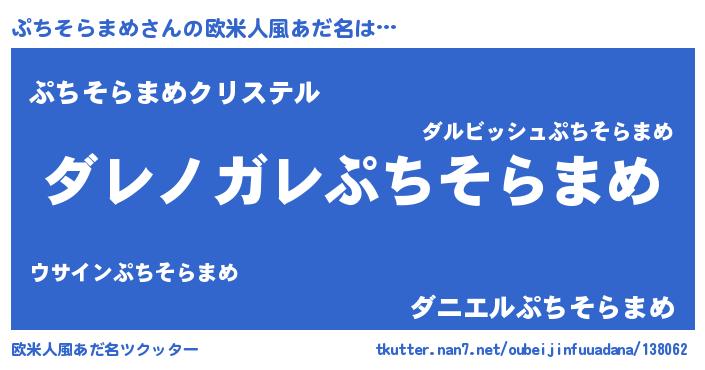| 男性向けラノベタイトル風あだ名 | 『この素晴らしい世界にぷちそらまめを!』 |