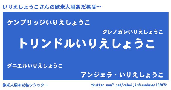 | 男性向けラノベタイトル風あだ名 | 『いりえしょうこ~年齢イコール彼女いない歴の魔法使い~』 |