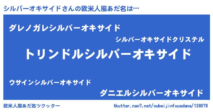 | 男性向けラノベタイトル風あだ名 | 『シルバーオキサイドスレイヤー』 |