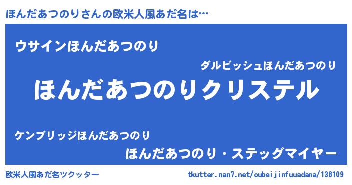 | 女子向けラノベタイトル風あだ名 | 『ほんだあつのりの婚約者』 |