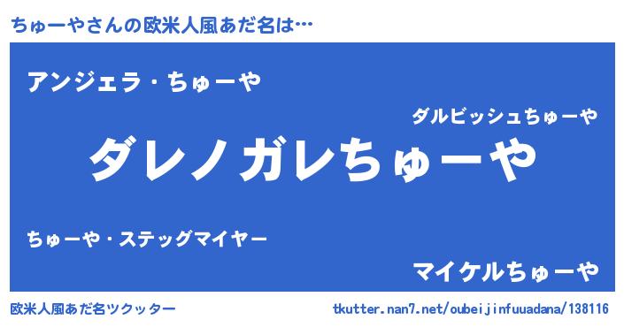 | ヘコむあだ名 | 『ちゅふぇ~』『ちゅーや(遠い目)』 |