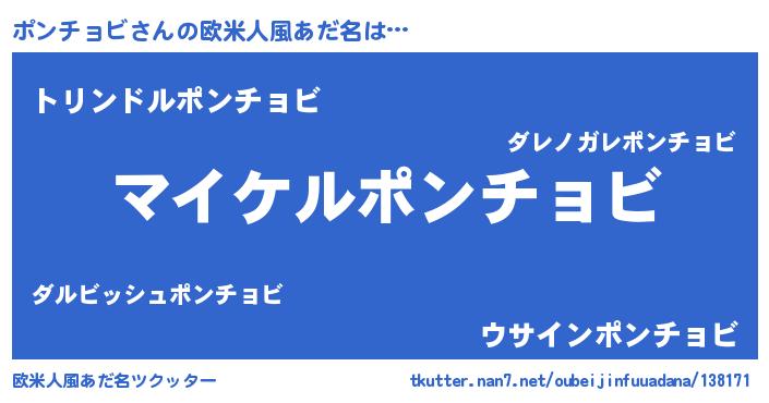 | 男性向けラノベタイトル風あだ名 | 『ポンチョビの憂鬱』 |