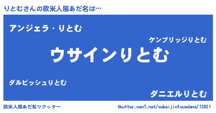 | 男性向けラノベタイトル風あだ名 | 『りとむの嫁は女の子じゃないと思った?』 |