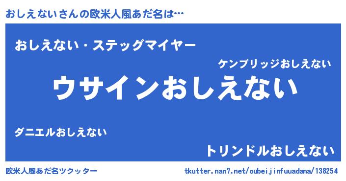 | 男性向けラノベタイトル風あだ名 | 『おしえないの嫁は女の子じゃないと思った?』 |