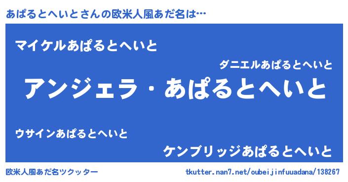 | ファンタジー風あだ名 | 『アパフェル』『ゼアパトゥ』 |