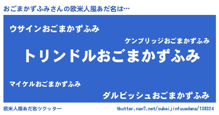 | 男性向けラノベタイトル風あだ名 | 『おごまかずふみ~年齢イコール彼女いない歴の魔法使い~』 |