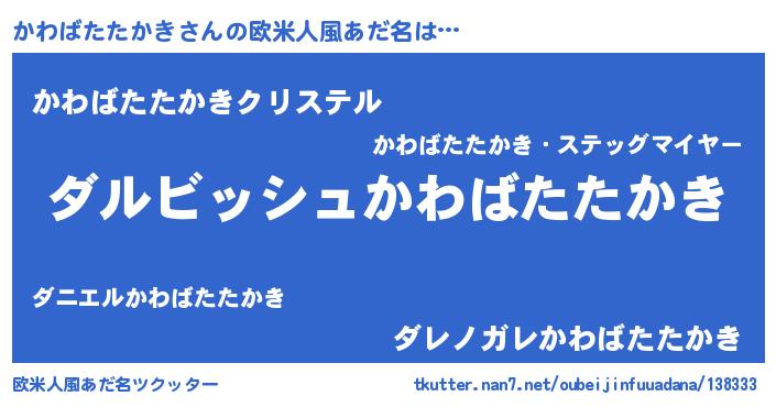 | 意味不明あだ名 | 『永久保存かわばたたかき』 |